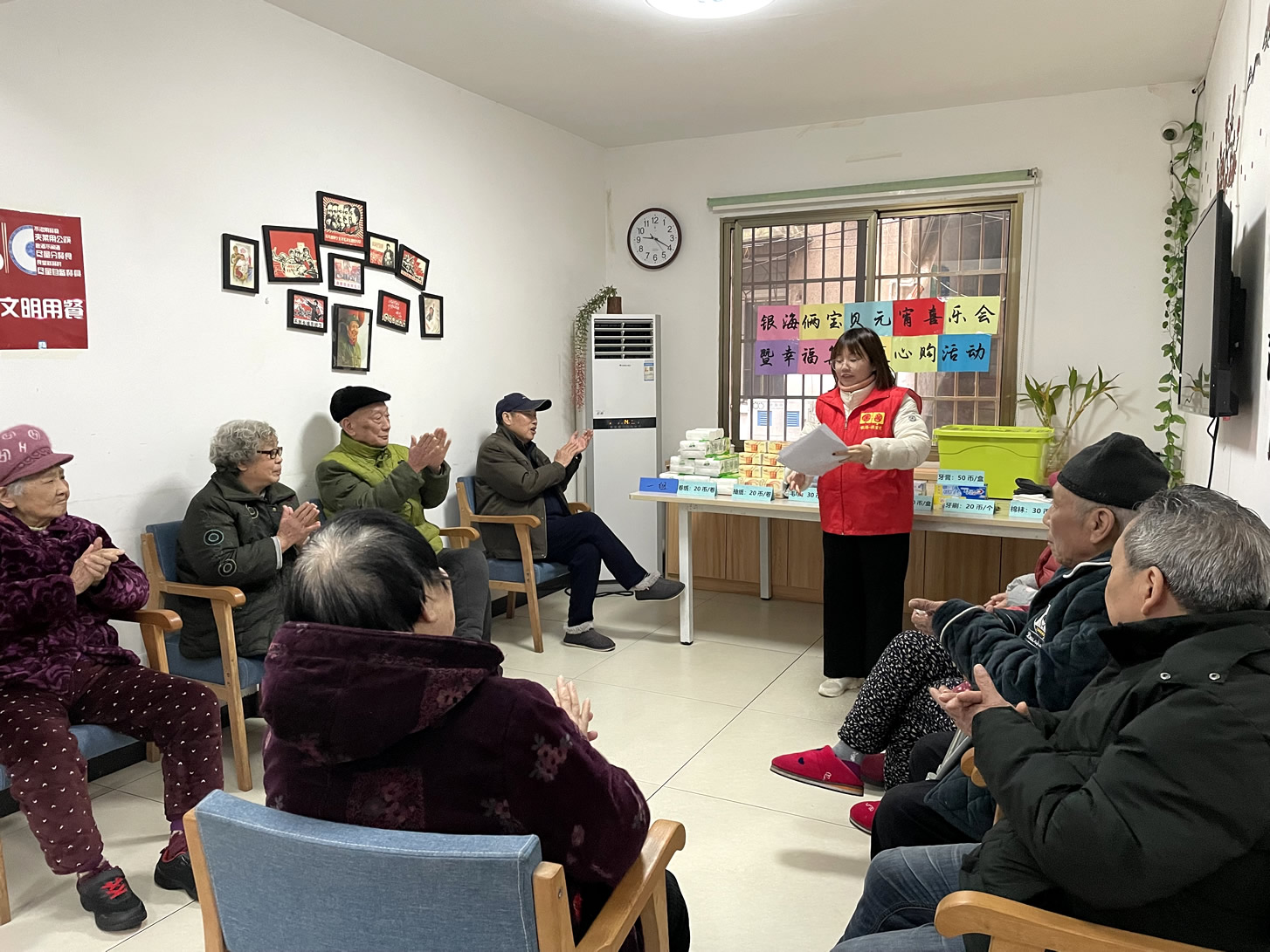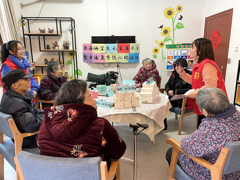 經(jīng)過一系列的比拼過后,每位爺爺奶奶都收獲到了不等的幸福幣,結(jié)合近期的活動出勤、興趣小組參與(遛鳥、養(yǎng)魚、澆花、擇菜等)、以及各類好人好事,爺爺奶奶們通過自己辛勤的勞動都拿到了相應(yīng)的“薪酬”。拿到工資的他們,認(rèn)真挑選著自己需要的物品,集市上人群熙攘,熱鬧非凡。
