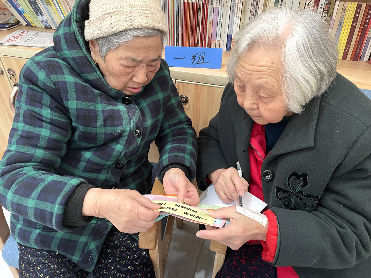 除了通俗易懂的趣味謎題,我們還準(zhǔn)備了益智游戲“撈金魚”。爺爺奶奶們?yōu)榱烁鹘M的榮譽(yù)申請代表出戰(zhàn),在大家的加油吶喊聲中比賽著,好不熱鬧!
