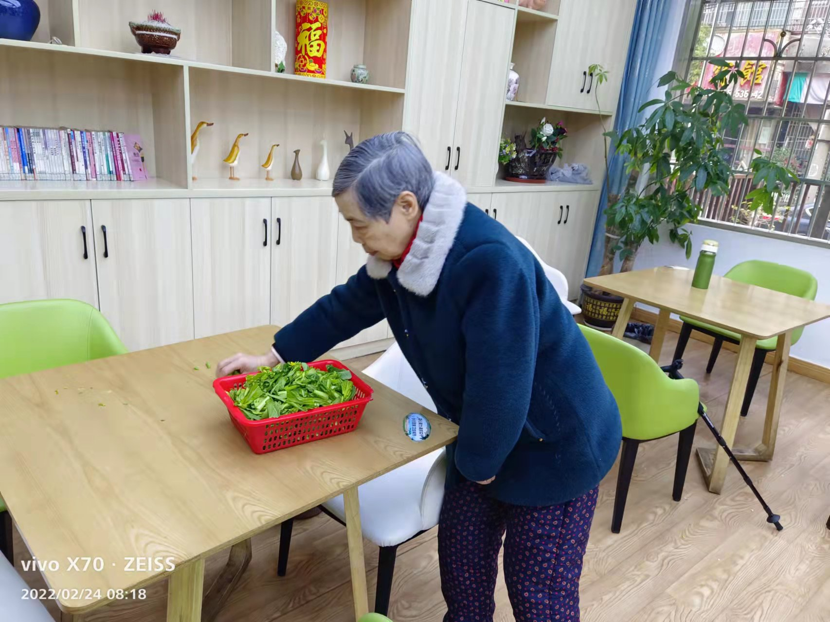 她進銀海以來,天天幫助打掃食堂清潔,拖地,抹桌子,幫食堂摘菜,還組織其他老人參加,一起干活,真正帶動了一大批老人學雷鋒,天天幫食堂里摘菜,很受大師傅們的歡迎。