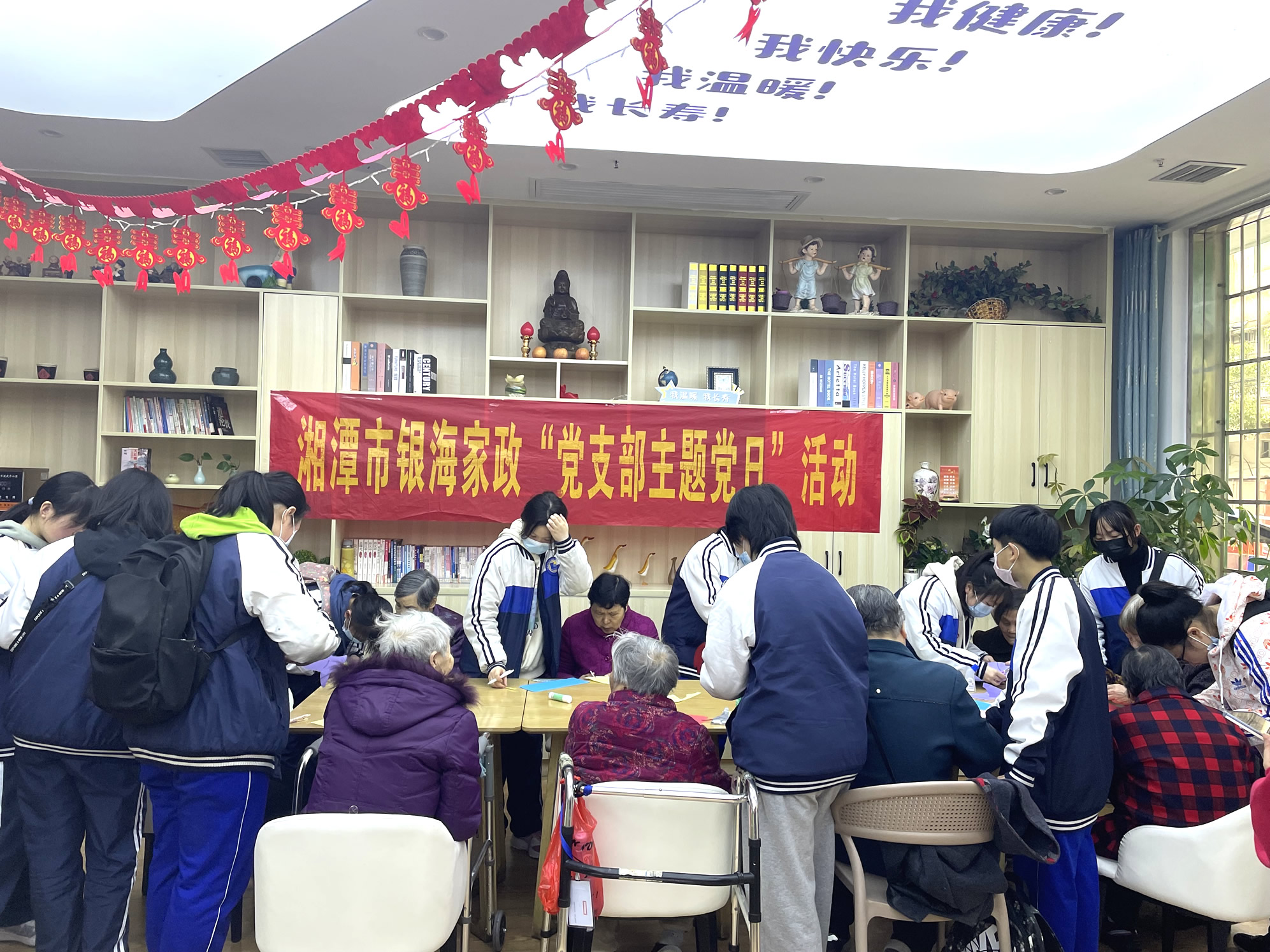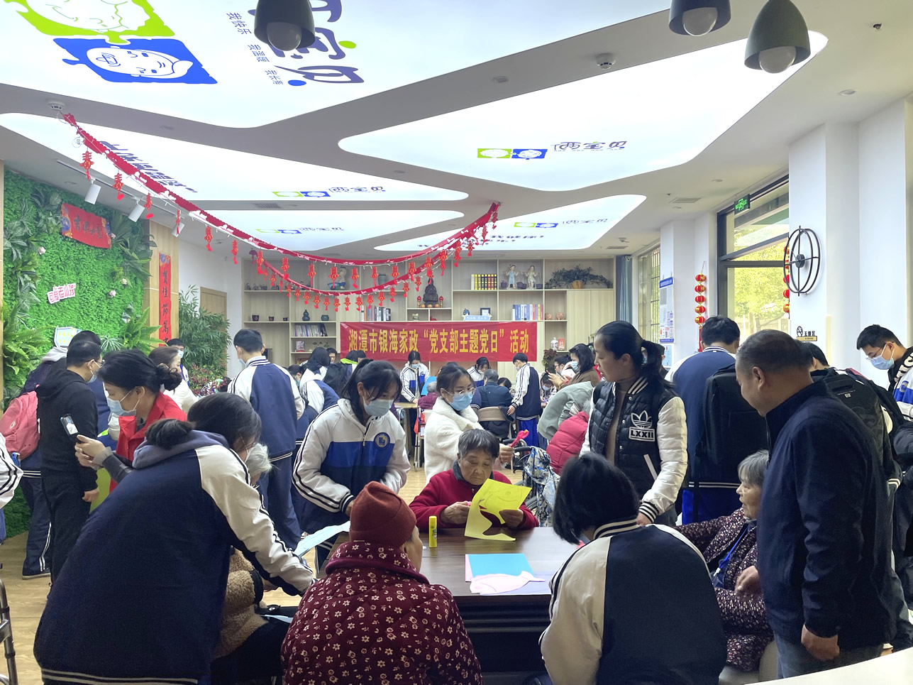 奉獻愛心,收獲希望。在3月5日這個特殊而又有紀念意義的日子里,湘潭市湘鋼一中初三級1907班50余名學生志愿者來到銀海倆寶貝窯灣康養(yǎng)中心內(nèi),為院內(nèi)的爺爺奶奶們送去了牛奶、水果、蛋糕等物品以及滿滿的祝福!