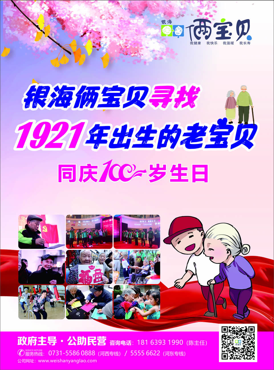 在黨的100歲生日到來之際,銀海家政集團(tuán)旗下銀海倆寶貝養(yǎng)老服務(wù)中心欲回饋社會(huì),將在湘潭市全市范圍內(nèi)尋找1921年出生的老人,請(qǐng)他們講述別樣的人生經(jīng)歷,他們都是經(jīng)過槍林彈雨的戰(zhàn)爭年代。我們期待著分享每位老人的心路歷程,再一次接受心靈的撞擊和精神的洗禮。