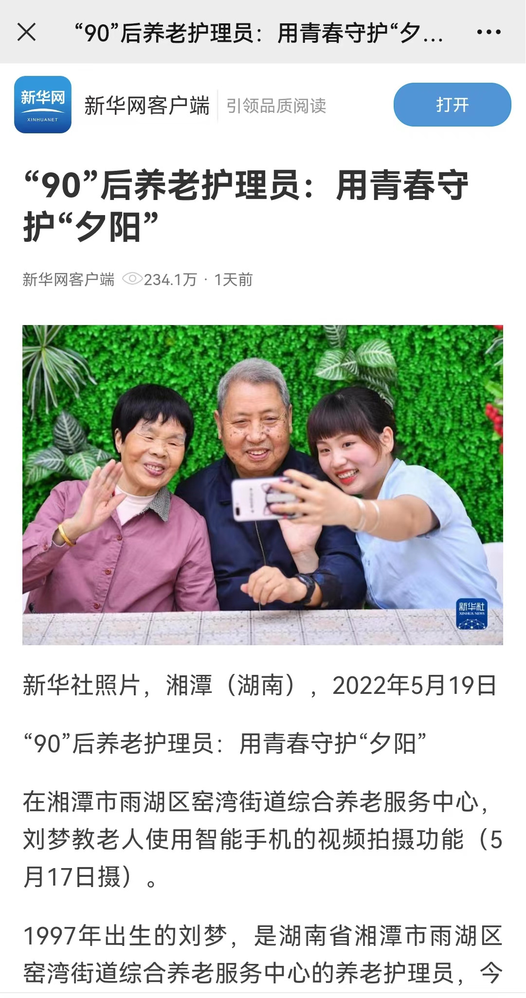 活潑開朗愛笑的劉夢作為康樂活動師,每天讓這一方院落充滿生機。每年40多場大型活動的策劃,近700場日常活動的組織,只是她工作成果的一部分。她不止是一名康樂活動師,她也是一名護理員,是一位小院長,是一位小老師,她是青春的正能量,也是老人們心中的小太陽。