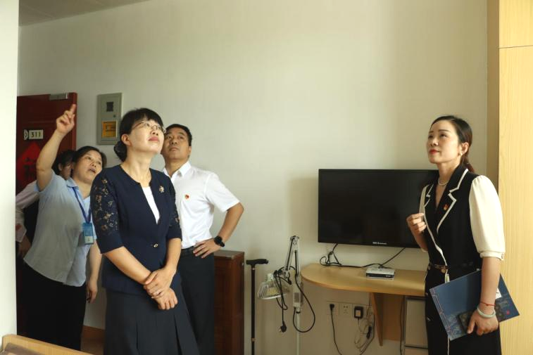 董事長王朝暉女士帶領(lǐng)導(dǎo)一行先后參觀了銀海倆寶貝窯灣康養(yǎng)中心的藥房、文化墻、多功能活動(dòng)室、各類助老設(shè)施、護(hù)士站、綜合養(yǎng)老服務(wù)平臺、年齡博物館、陽光花房等地。