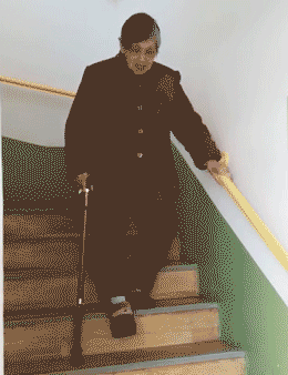唯一的幫手是她那根小小的拐杖,上下樓梯時,一步一個臺階,又快又穩(wěn),和其他爺爺奶奶們形成了鮮明的對比。